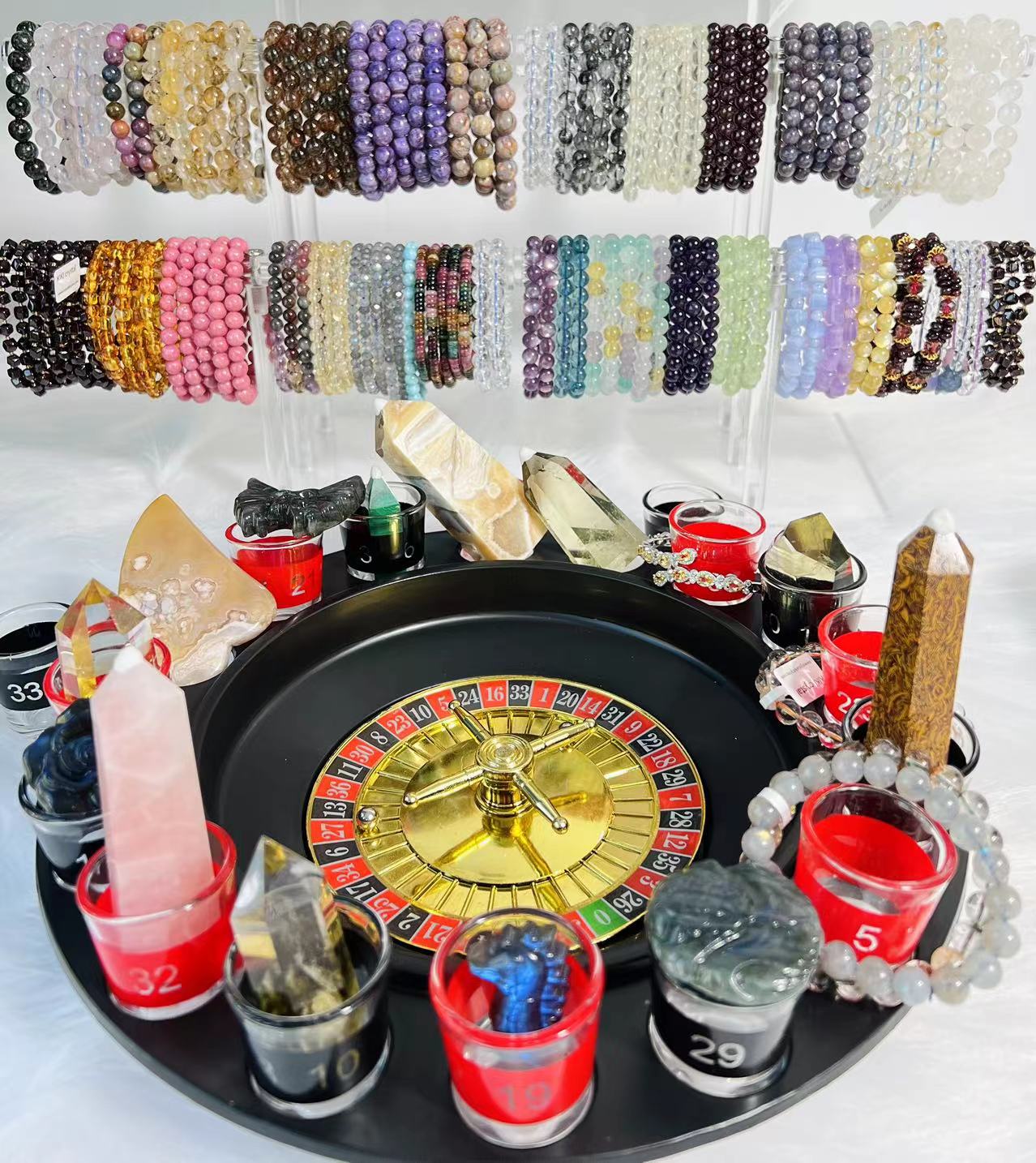 These interesting lucky crystals include crytal spheres, points, carvings, raw pieces, and different crystal jewelry. natural crystals, quality assurance, over valued. we are not sure what you will get, it is the fun of lucky crystal wheel.